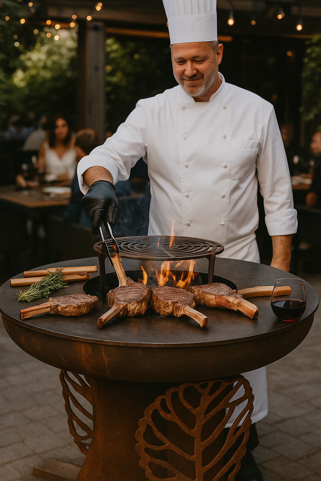 Braseros, planchas et fumoirs personnalisables. Pour vos événements, vos espaces pro et votre jardin.